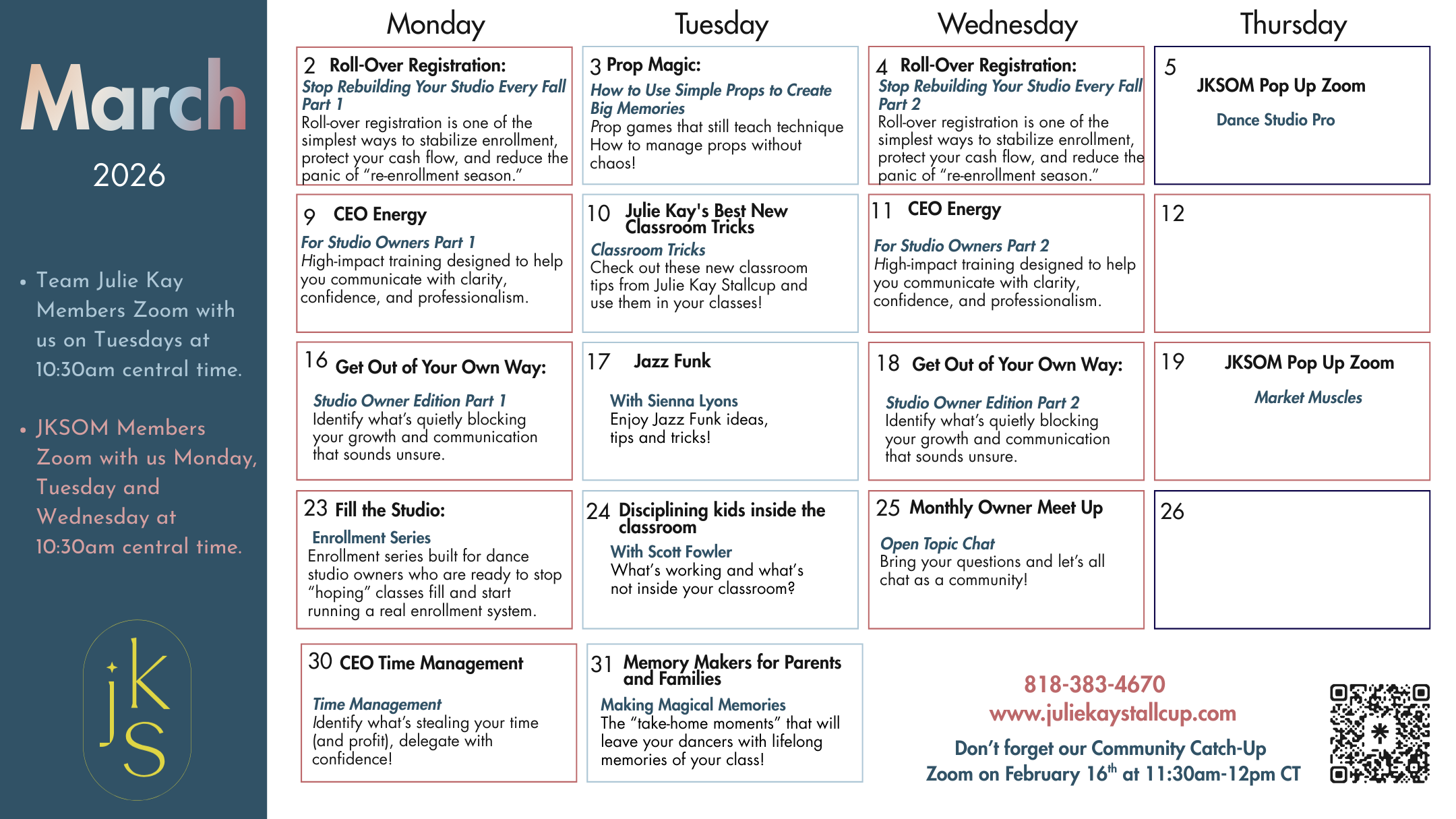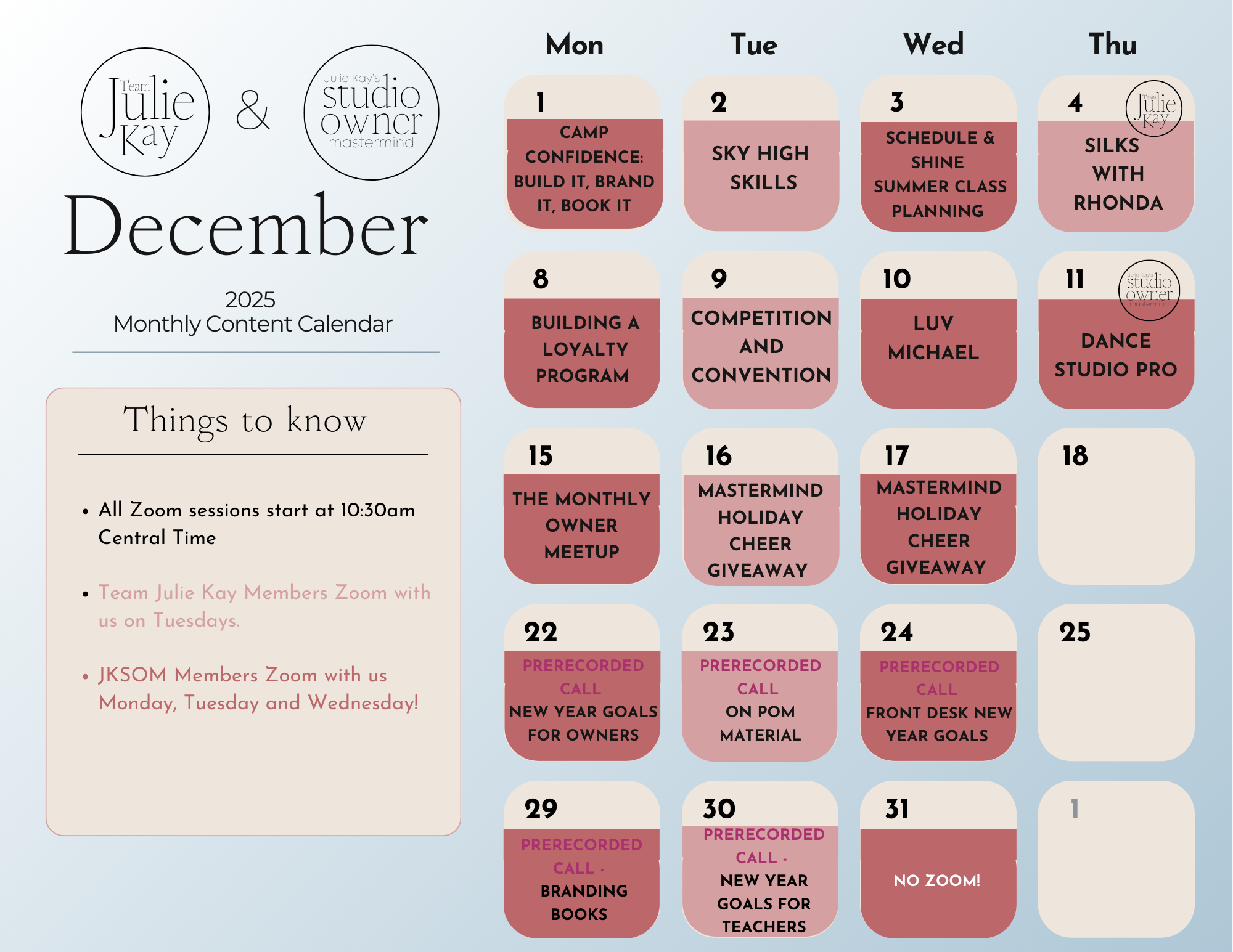 EVERY WEEK in Julie Kay’s membership program for studio owners.
